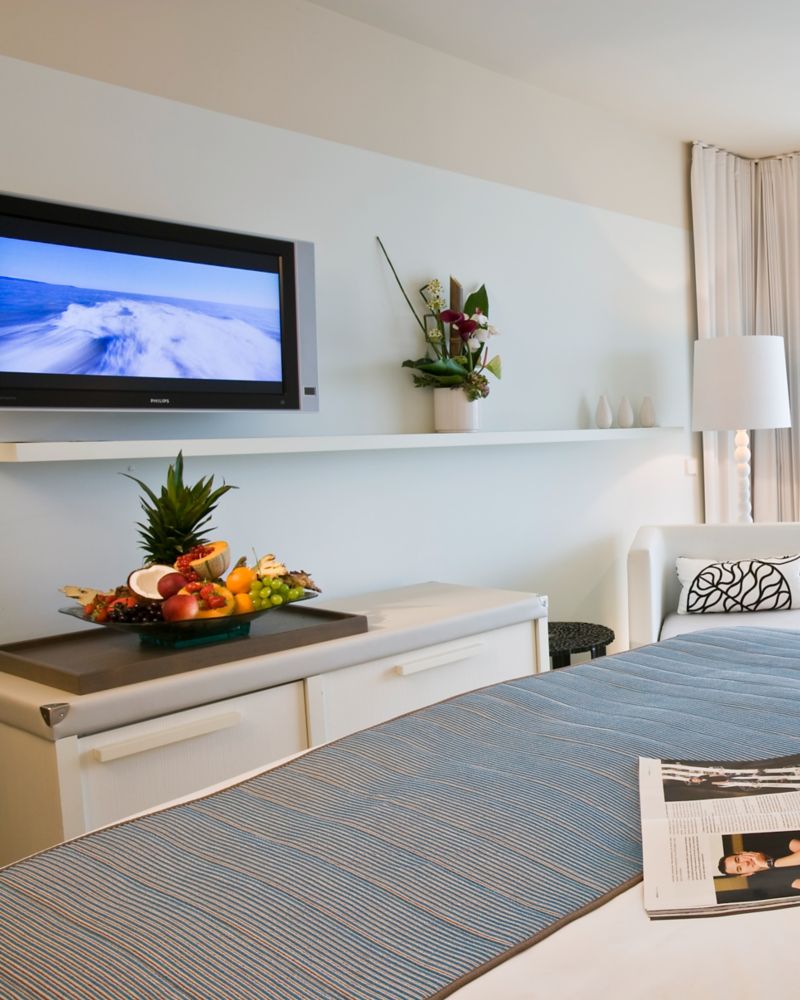HABITACIÓN SUPERIOR con cama king size, sofá cama y terraza con vistas al mar