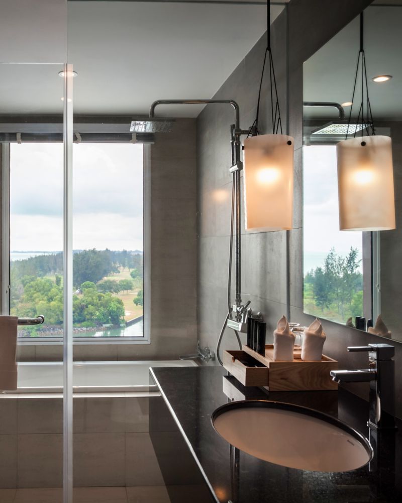 Asiento en primera fila para contemplar el mar de la China Meridional. Santuario de 48 m² con servicios fiables que necesita un profesional de O&G con la experiencia de recuperación tranquila alineada con el horizonte que merece, e incluye bañera y ducha.
