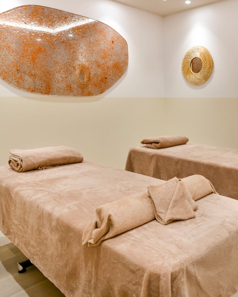 Explore nuestro oasis de bienestar de 240 m², diseñado para momentos de serenidad y experiencias revitalizantes. Disfrute de tratamientos con productos orgánicos de PAOMA o renuévese en nuestro sauna, hammam y piscina, todo diseñado para mejorar su bienestar.