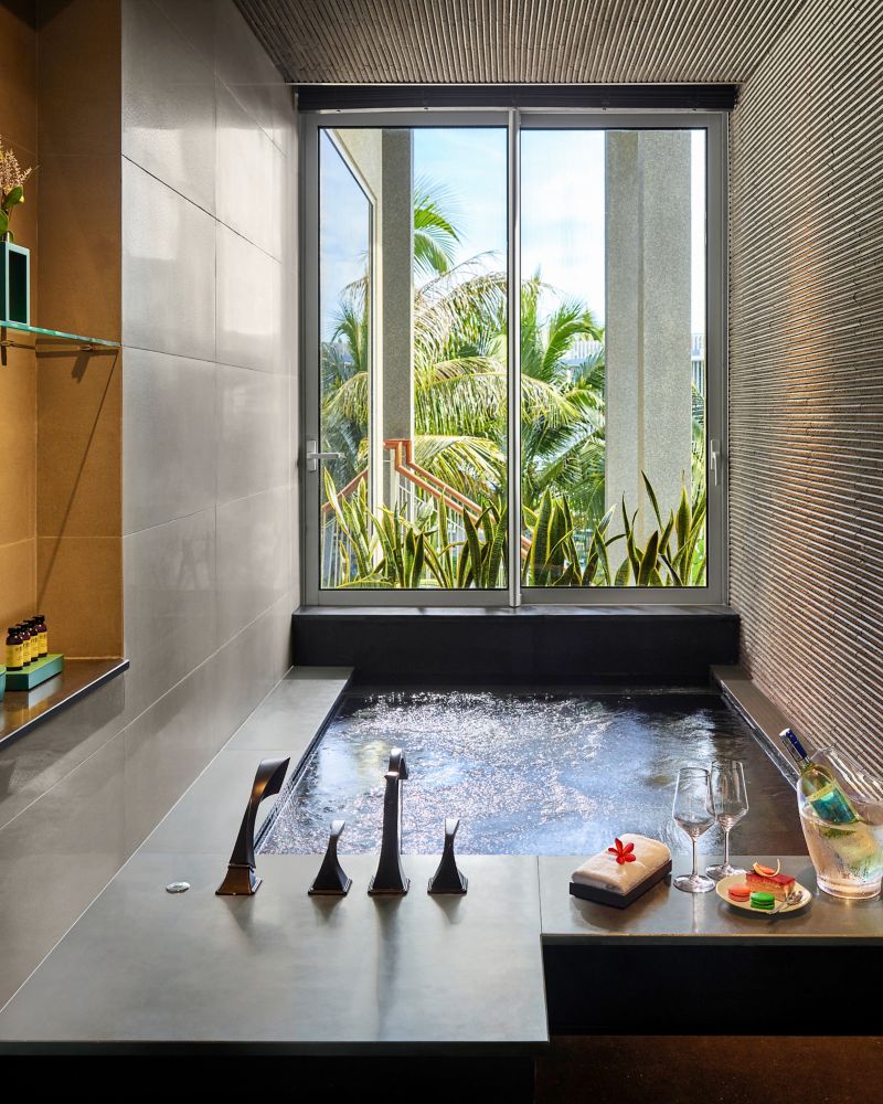 45 m², vistas al jardín, ducha de lluvia, bañera, bidé electrónico, cafetera espresso, IPTV de 55", minibar, WIFI y sistema de iluminación nocturna. Máximo 2 adultos y 2 niños en las camas disponibles.