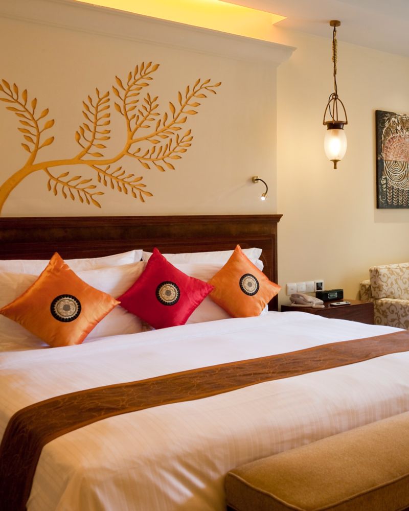 La habitación Deluxe con una cama King y vistas a la piscina ofrece una combinación perfecta de descanso y creatividad en 48 m². Sumérjase en un espacio donde la elegancia del sudeste asiático se combina con las comodidades modernas, desde Internet de alta velocidad hasta un baño refrescante, todo mientras disfruta de la vista a una piscina tranquila.