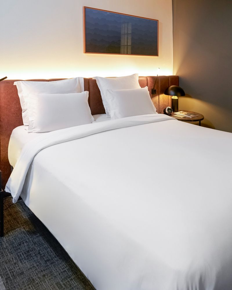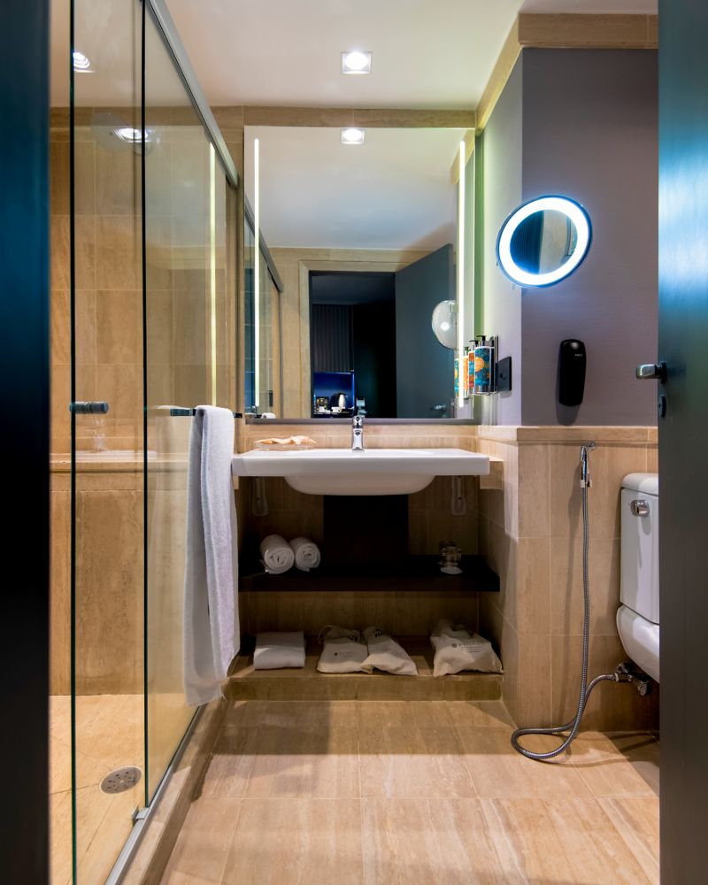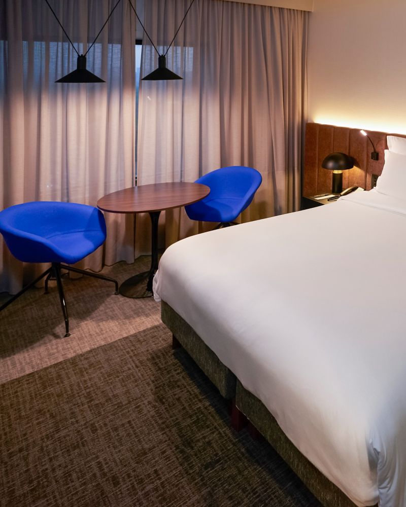 La habitación Premium Deluxe con vista a la ciudad ofrece un espacio de 27 m² (290 pies²) donde la creatividad se une con la comodidad. Disfrute del pulso de la ciudad a través de vistas revitalizantes, complementado con un conjunto de tecnologías intuitivas y comodidades bien pensadas, perfecto tanto para pausas de descanso como para la creatividad sostenida. Incluye wifi gratis, un televisor de 49 pulgadas con cable, instalaciones para preparar té y café, una máquina Nespresso con cápsulas, pantuflas Pullman y agua de cortesía.