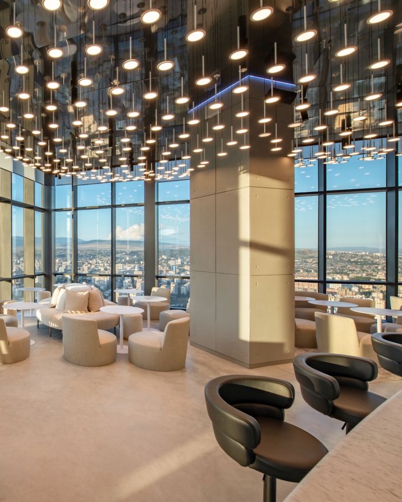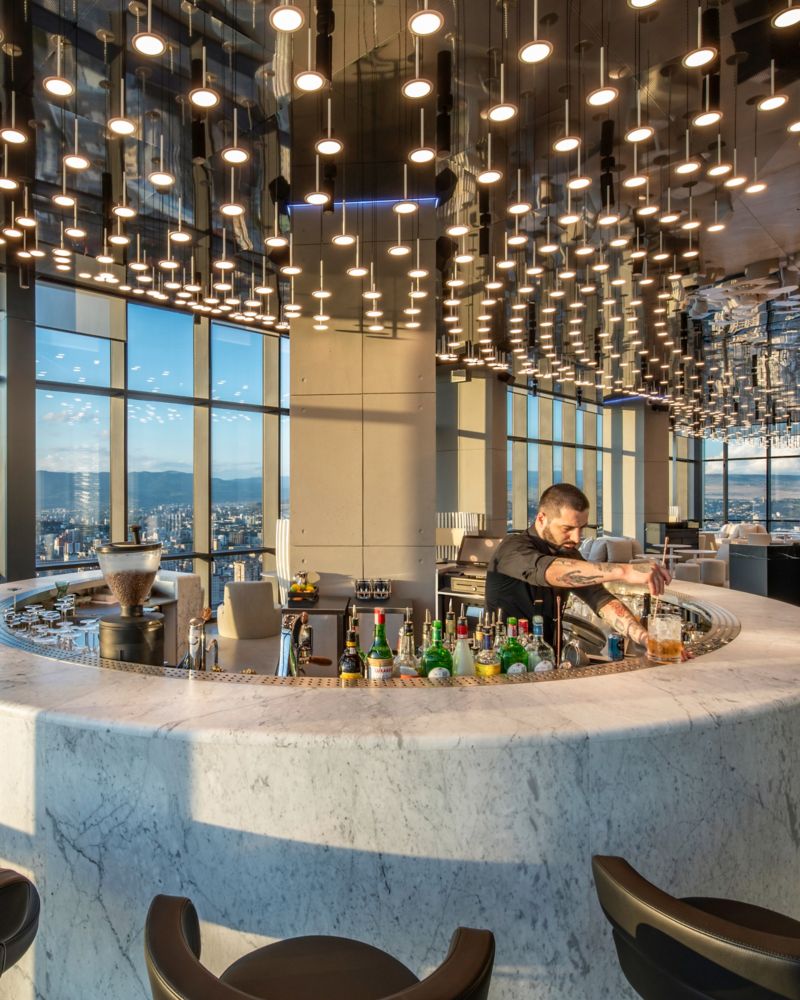 Suba a la cima de la escena de bares de Tiflis en el Sky Bar Weather Report, donde el chef Emmanuel Pauliat crea una fusión de sushi y tapas. Deléitese con las vistas panorámicas a la ciudad, los cócteles innovadores y los recuerdos inolvidables: un lugar para encuentros animados, ya sea para una velada romántica o para un brindis bajo las estrellas.