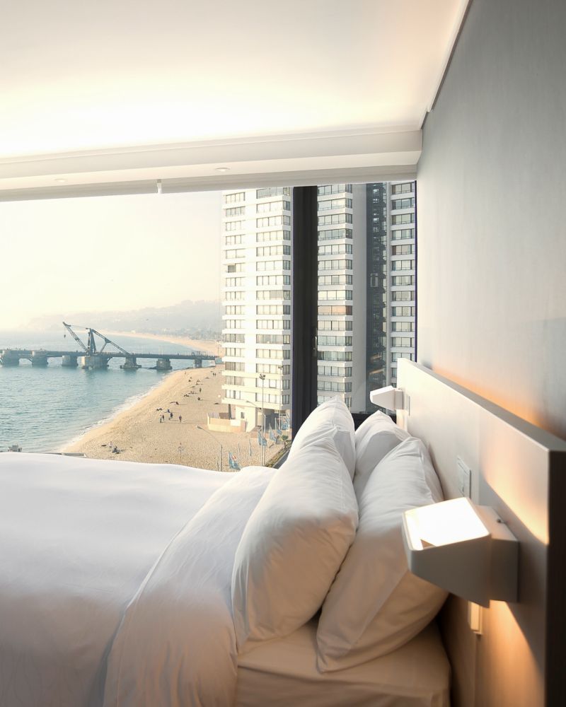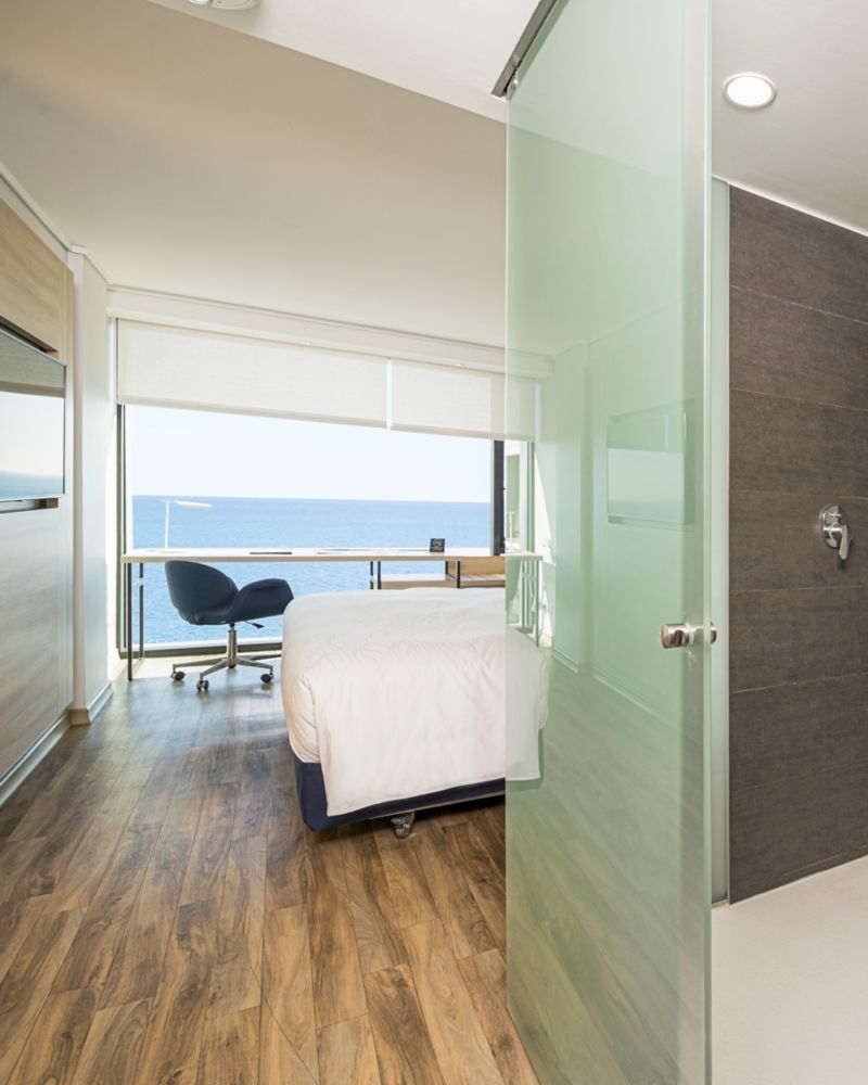 Esta habitación de 23 m² es una excelente opción para parejas. Ofreciendo la autonomía necesaria para tu estadía en Viña del Mar, el espacio dispone de grandes ventanales, favoreciendo la luz natural.