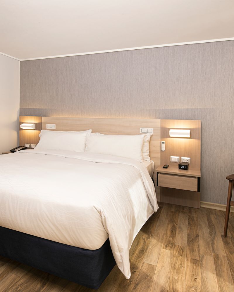 Ubicadas en piso alto superior. Acogedoras y modernas habitaciones con 23 m² con 1 cama King y una hermosa vista a la bahía. Cuenta con LCD 40 pulgadas, aire acondicionado, WiFi y area de trabajo.