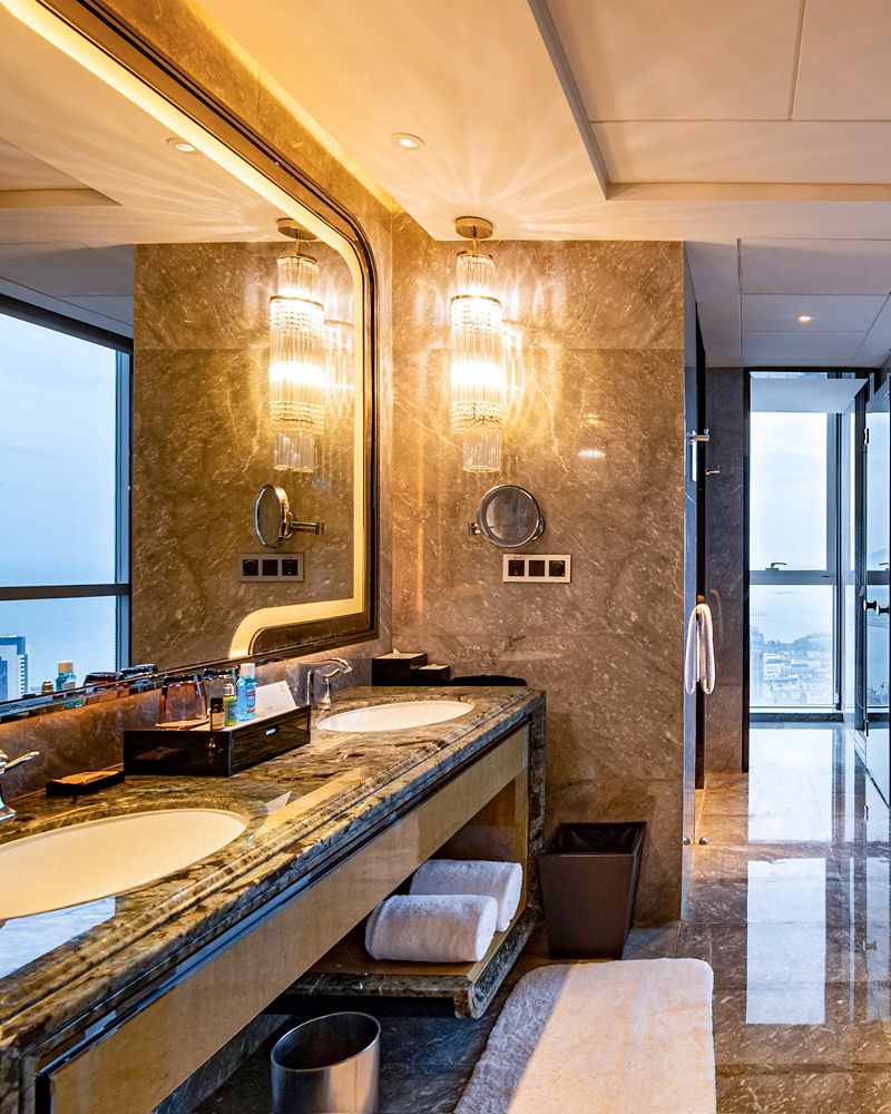 La suite Deluxe prémium ofrece una combinación de descanso y creatividad en 77 m² de elegancia contemporánea. Con una cama tamaño king y revitalizantes vistas al mar, este refugio en un piso alto cuenta con una sala de estar independiente, tecnologías intuitivas y artículos de tocador C.O. Bigelow de cortesía. Disfrute de momentos de pausa e inspiración con wifi gratis y un televisor LED de 48 pulgadas.