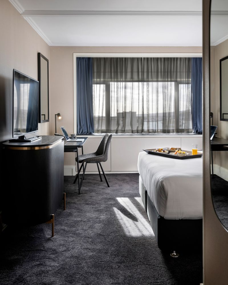 Designed for comfort and convenience, this room welcomes you with two plush Queen Beds and views of Auckland. Featuring 32" LCD TV, entertainment channels, generous work area with WIFI Internet as well as a marble bathroom and air-conditioning.