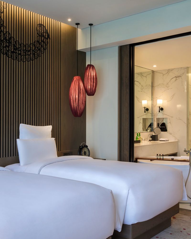 La chambre Executive, avec ses deux lits simples, vous permet de concilier harmonieusement repos et créativité. Profitez d'un espace de 28 m² (301 sqft) conçu pour la détente et un confort douillet, doté de technologies intuitives et d'aménagements bien pensés.