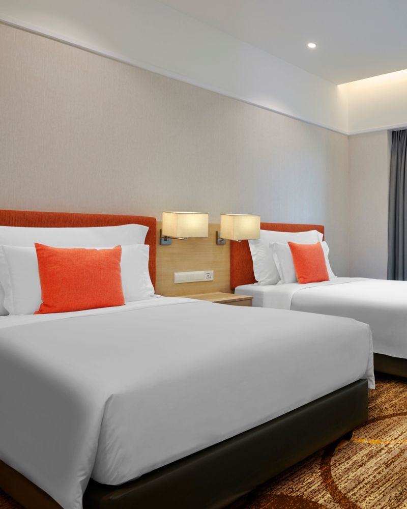 La chambre Deluxe, dotée de deux lits simples, vous offre un espace élégant de 35 m² (377 sqft) en étage élevé, avec une vue vivifiante sur l'horizon vibrant de Kuala Lumpur. Profitez de moments de repos et de créativité grâce au Wi-Fi gratuit, à une télévision LED de 49 pouces et à des aménagements bien pensés. La lumière naturelle sublime cet espace contemporain, parfait pour la détente comme pour l'inspiration.