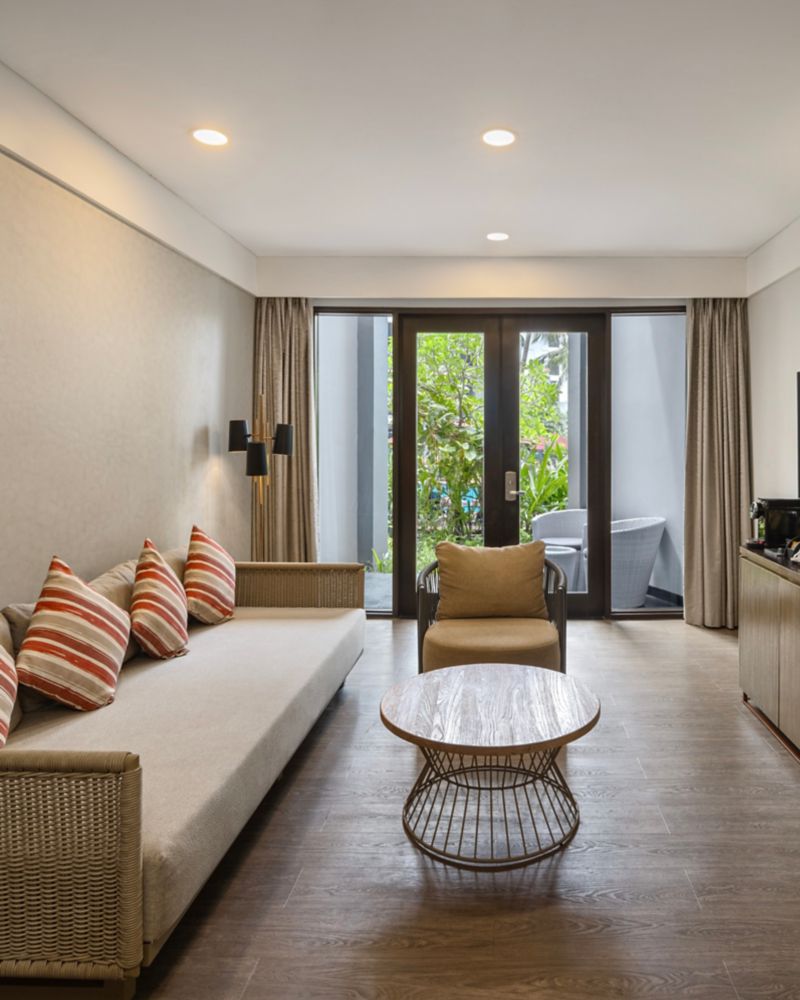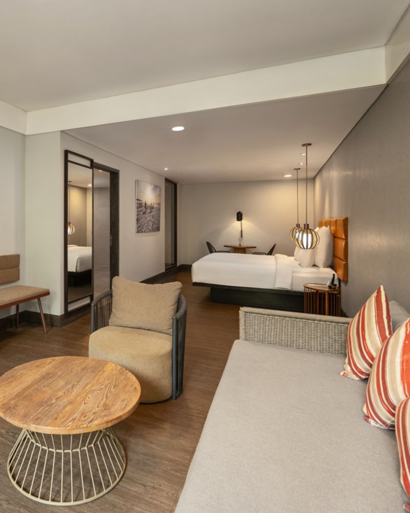 Entrez dans la suite premium à une chambre, qui offre un mélange de repos et de créativité sur 85 m² (915 sqft). Cette suite dispose d'un lit king size, de vues vivifiantes sur un jardin luxuriant et d'un espace de vie pour vous détendre et nourrir votre créativité. Profitez d'aménagements bien pensés comme une Smart TV LCD de 55 pouces, le Wi-Fi gratuit et une machine à expresso, le tout dans le cadre paisible de jardins tropicaux.