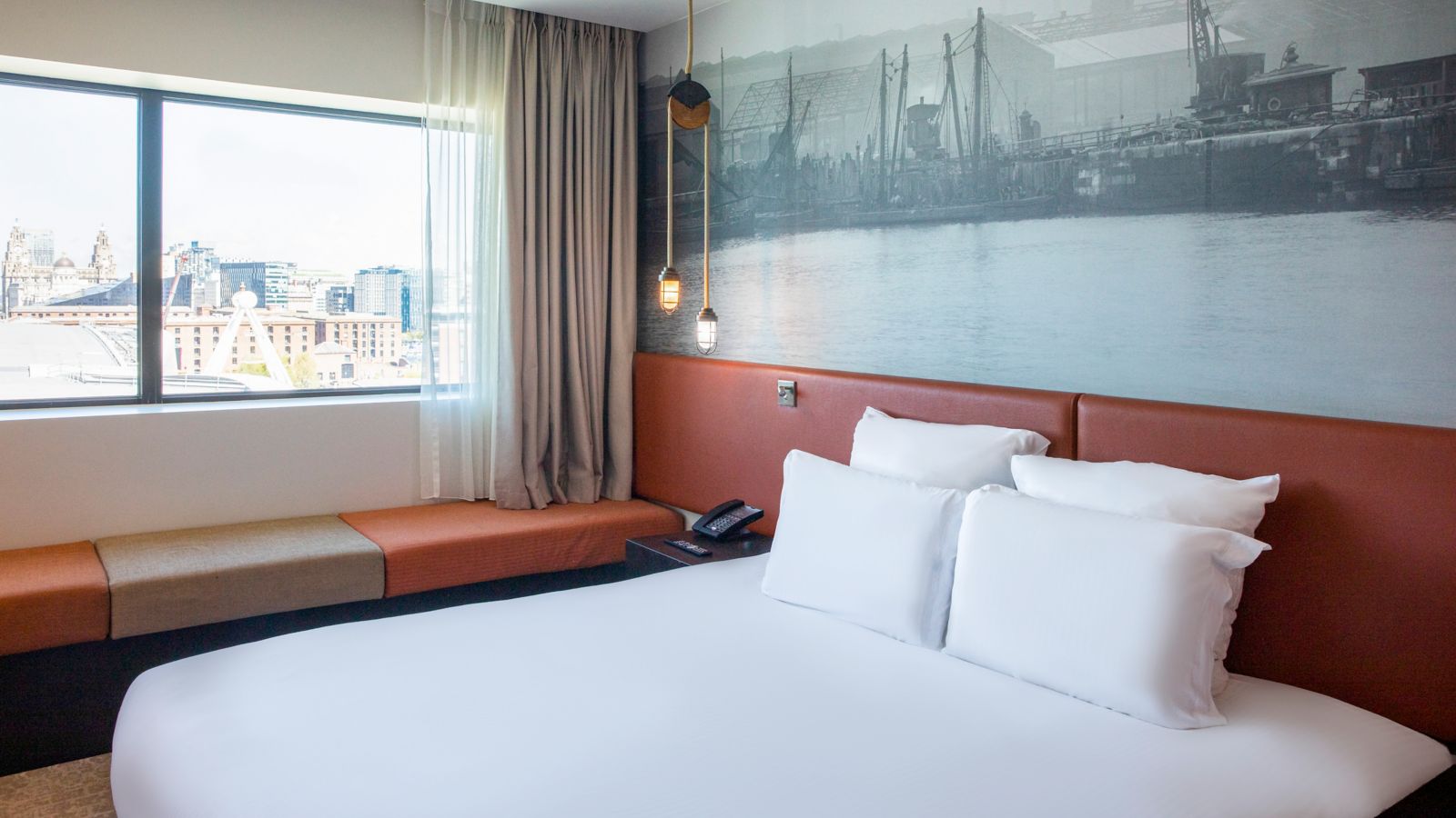 Chambre de 25 m² proposant vue sur le fleuve Mersey, lit King, stores occultants et bouteille d'eau minérale gratuite. Profitez d'un accès WIFI haut débit gratuit, d'une TV 55 avec films gratuits à la demande et produits de toilette Co. Bigalow de luxe.