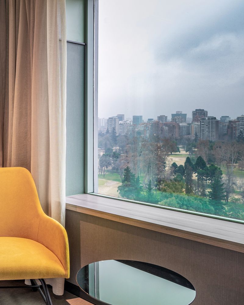 Chambre Deluxe avec vue imprenable sur Los Leones Golf Club et ses montagnes avec lit king size, TV écran plat avec câble, service de réveil, WIFI et coffre.