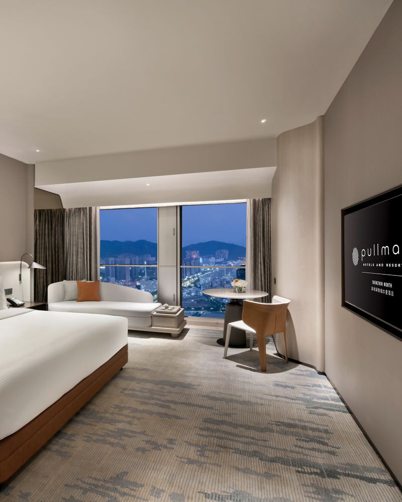 46 m²/495 sq. ft. room, Located on 47th to 53th floors, Panoramic French windows with Skyline view. Large bathroom with separate shower & bathtub. Luxurious mattress & amenities. 55'' TV, High speed Internet, wireless charger.