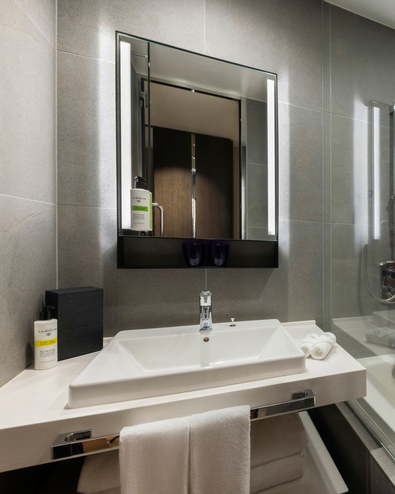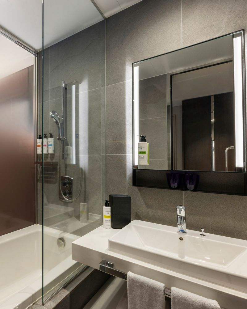 Une technologie de pointe. Chambre élégante et confortable dans le centre-ville. 29 m² d'espace intuitif avec lit king size, bureau, douche à effet pluie à l'italienne et enceinte Bose. Jusqu'à 2 adultes et 1 enfant.