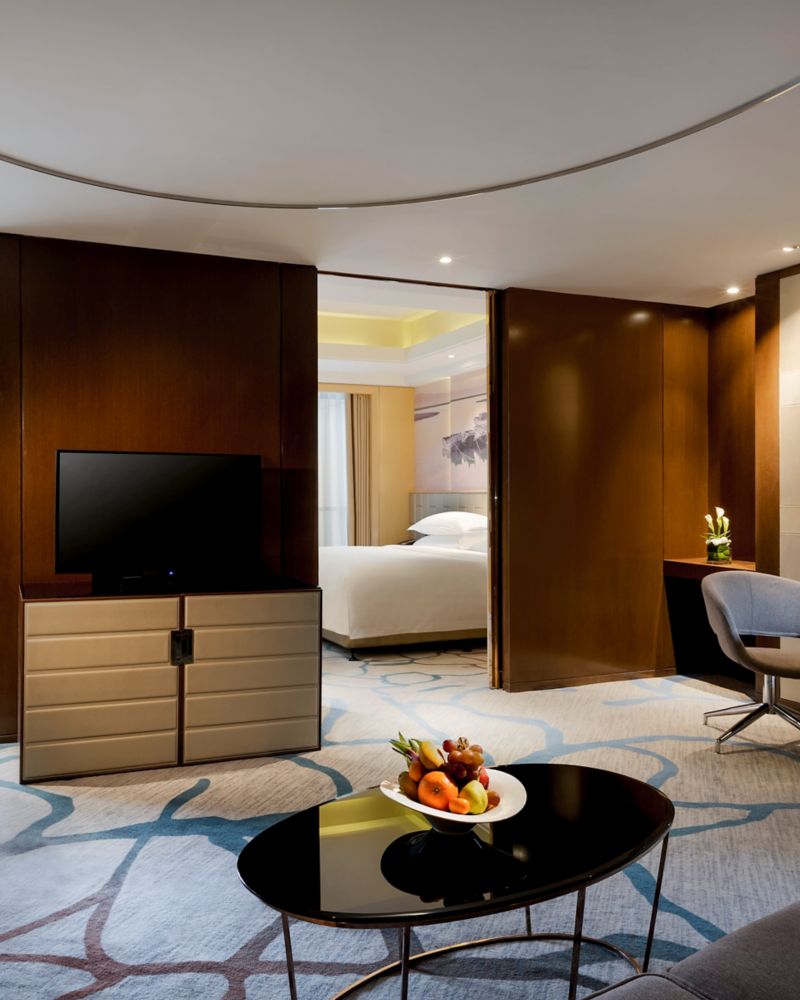 La suite Deluxe, d'une superficie de 60 m² (646 sqft), offre un mélange harmonieux de détente et de créativité. Avec ses vues vivifiantes sur le fleuve Oujiang, cette suite est un havre de paix pour le voyageur moderne. Profitez du Wi-Fi gratuit, d'une télévision 42" et d'aménagements bien pensés tels qu'une machine Nespresso et un tapis de yoga, pour vous garantir confort et inspiration.