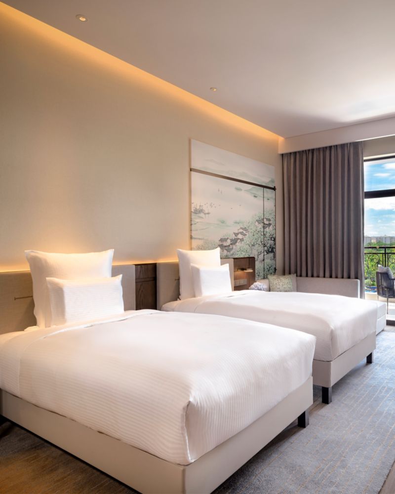 La chambre Deluxe, avec son balcon privé et sa vue sur le jardin, offre un espace serein de 49 m² (527 sqft) pour vous détendre. Immergez-vous dans un espace où des aménagements bien pensés côtoient des technologies intuitives, un lieu parfait pour allier détente et créativité.