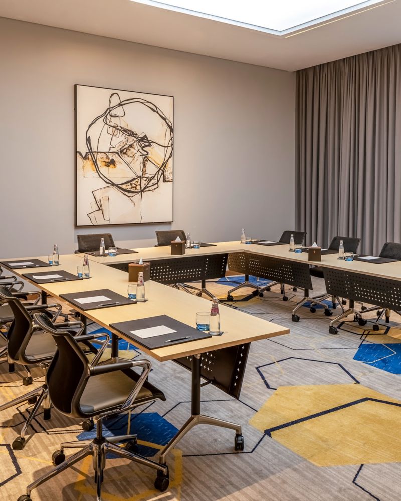 Entre no Al Dana Ballroom ou nas Al Mamzar Meeting Rooms do Pullman Sharjah, onde 450 metros quadrados de espaços modernos esperam por você. Aqui, cada evento se transforma em uma experiência inspiradora com tecnologia de ponta e serviço personalizado, garantindo um fluxo contínuo de ideias e interação.