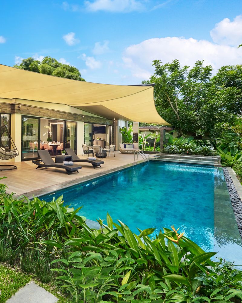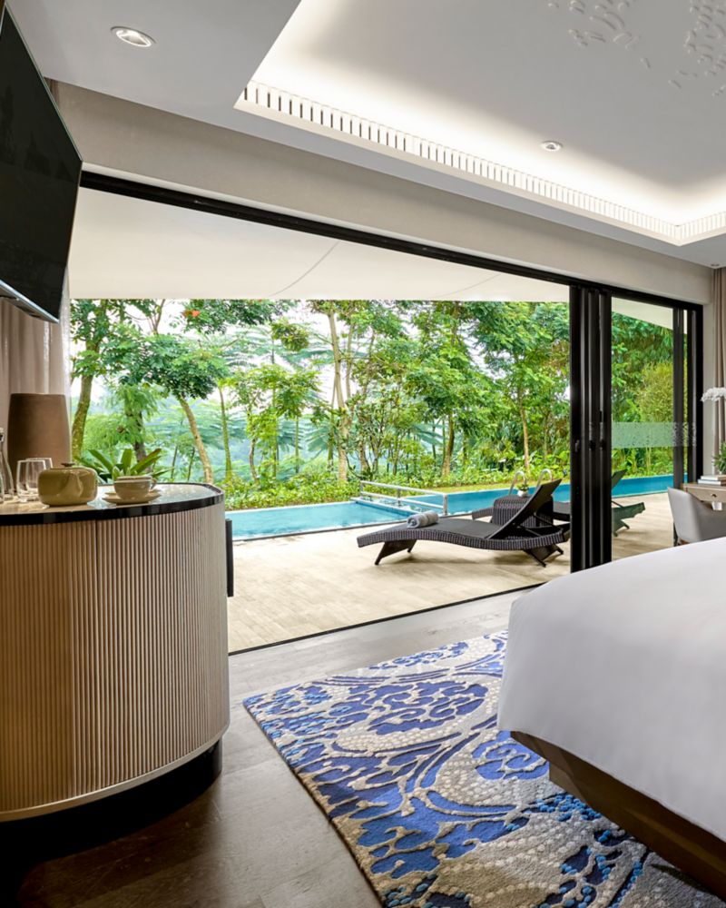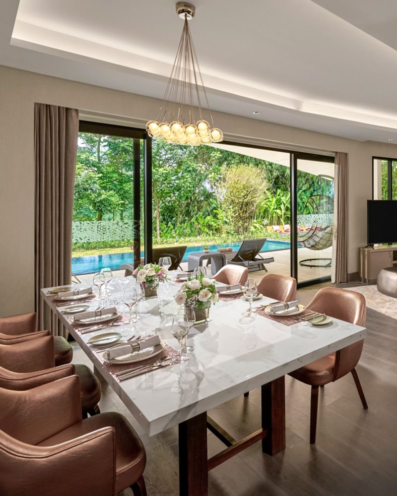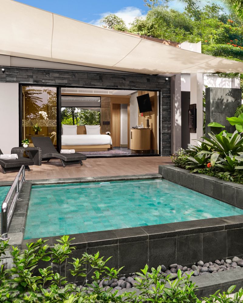 จูเนียร์ เพรสซิเดนเชียล วิลล่า ที่มาพร้อมเตียงคิงไซส์สามเตียงและสระว่ายน้ำอุ่นส่วนตัว คือการผสานการพักผ่อนและความคิดสร้างสรรค์เข้าไว้ด้วยกันอย่างลงตัว วิลล่าที่เป็นดั่งสวรรค์แห่งการพักผ่อนบนพื้นที่ 250 ตร.ม. (2,690 ตร.ฟุต) แห่งนี้ ผสมผสานสิ่งอำนวยความสะดวกที่เตรียมด้วยความใส่ใจเข้ากับเทคโนโลยีที่ใช้งานง่าย เพื่อสร้างสรรค์ช่วงเวลาแห่งความสงบท่ามกลางทิวทัศน์ที่ปลุกพลัง