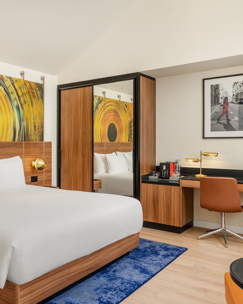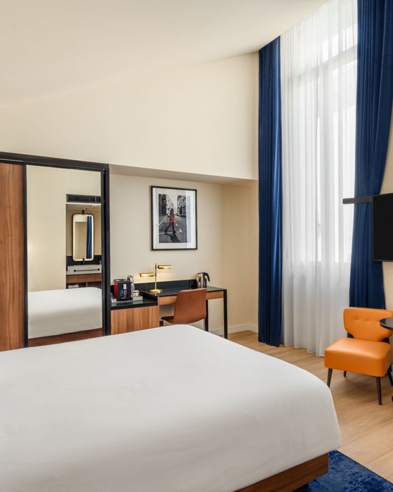 ห้องเอ็กเซ็กคูทีฟพร้อมเตียงเดี่ยวขนาดใหญ่หนึ่งเตียงมอบการผสมผสานที่ลงตัวระหว่างการพักผ่อนและความคิดสร้างสรรค์บนพื้นที่ 27 ตร.ม. (290 ตร.ฟุต) เพลิดเพลินไปกับ Wi-Fi ความเร็วสูง โต๊ะทำงาน และสิ่งอำนวยความสะดวกที่เตรียมด้วยความใส่ใจท่ามกลางการออกแบบที่ร่วมสมัย เหมาะสำหรับผู้ที่ชื่นชอบการหยุดพักอย่างมีความหมายท่ามกลางไลฟ์สไตล์แบบไดนามิก
