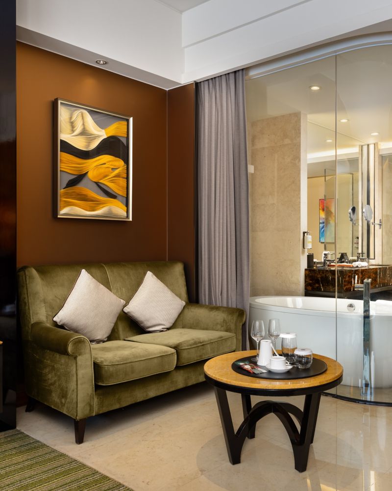 Our Junior suite has Pullman bed with a selection of pillows, TV, mini bar, safe box, spacious bathroom with bathtub, free WIFI. Whether you are in here for business or travel,our rooms will make your experience truly unique and memorable.
