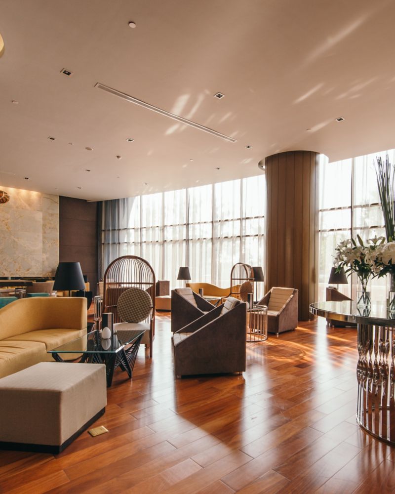 ก้าวเข้ามาใน Lobby Lounge สวรรค์อันเงียบสงบที่ซึ่งความสบายและความสง่างามมาบรรจบกัน ล้อมรอบด้วยสวนอันเขียวชอุ่มที่มองเห็นได้ผ่านกระจกบานใหญ่ ที่นี่คือจุดที่สมบูรณ์แบบสำหรับการหนีไปพักผ่อนอย่างเงียบสงบหรือการสนทนาที่มีชีวิตชีวา พร้อมเพลิดเพลินไปกับความอร่อยที่สร้างสรรค์และรสชาติเยี่ยม