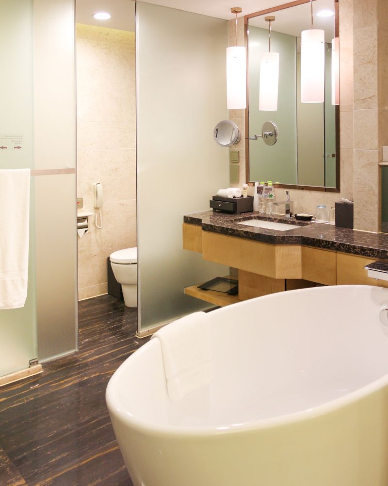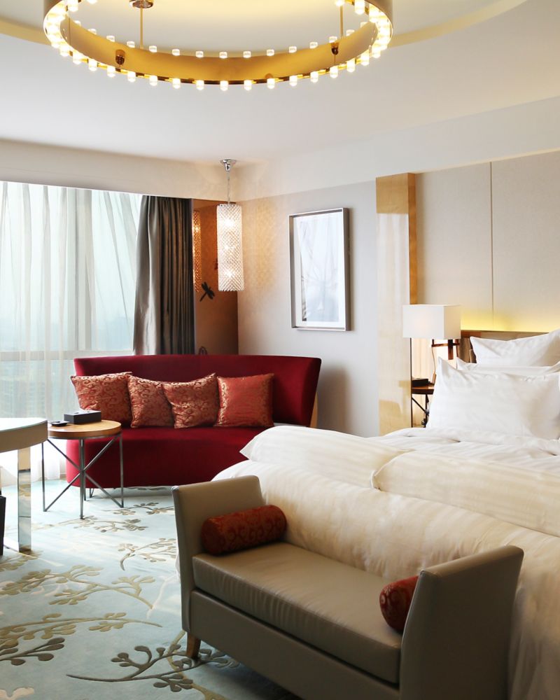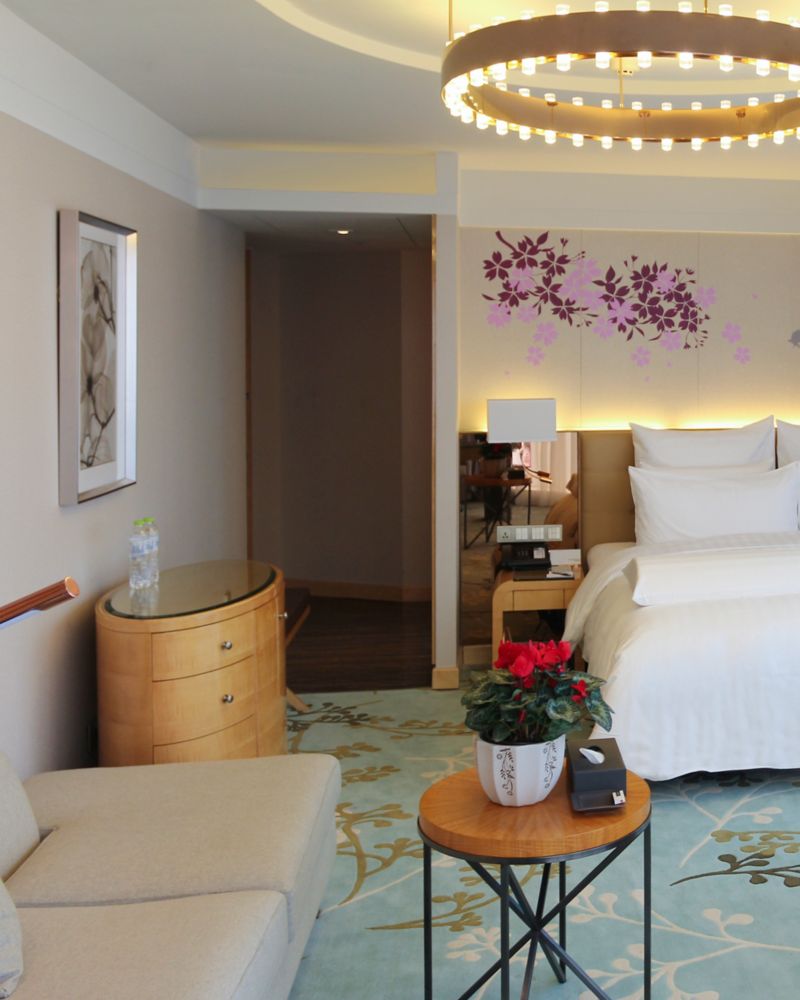 Located on 6th to 17th floor,contemporary rooms up to 40m² with grand river view and bathtub ,Take in the aura of wetland park, Hotel offers 42" LCD TV, 1 set of 2-meter Pullman bed and free wi-fi and high-speed internet access.