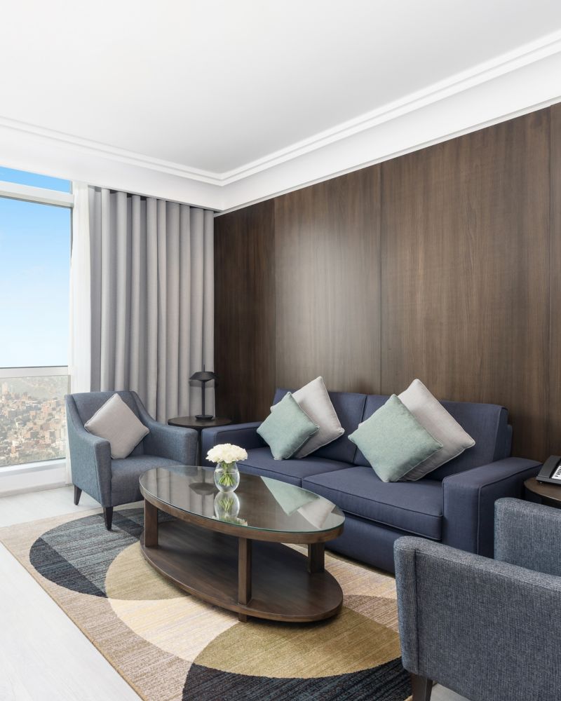 Spacious & renovated Deluxe Room up to 37sqm, invites you to discover aerial view over blessed Makkah city like never before. It's equipped with 50" LED-IPTV & in-room Haram audio; Feel refreshed with complimentary tea & coffee facilities & free Wi-Fi.