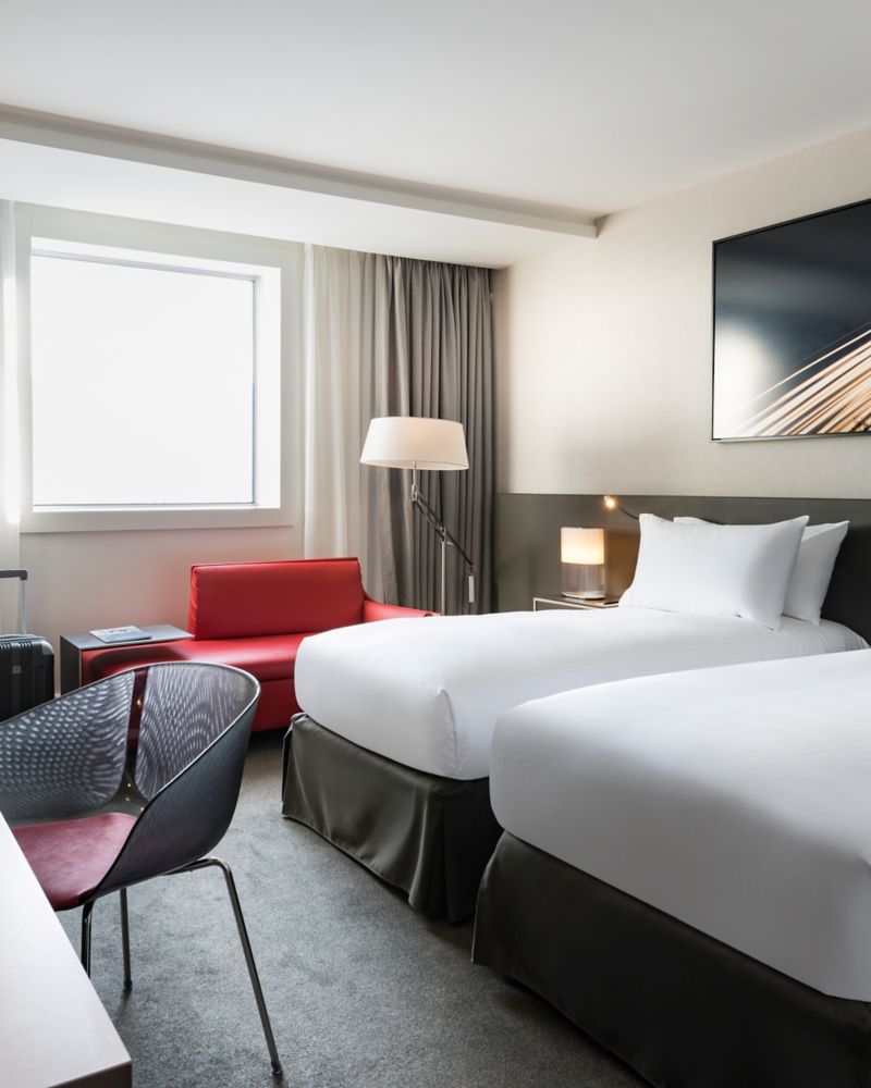 ห้องดีลักซ์พร้อมเตียงเดี่ยวสองเตียง มอบสวรรค์แห่งการพักผ่อนอันสดชื่นบนชั้นสูง พร้อมทิวทัศน์อันงดงามของ La Défense สัมผัสการผสมผสานที่ลงตัวระหว่างการพักผ่อนและความคิดสร้างสรรค์ พร้อมสิ่งอำนวยความสะดวกที่เตรียมด้วยความใส่ใจและเทคโนโลยีที่ใช้งานง่าย ขนาด 25 ตร.ม. (269 ตร.ฟุต)