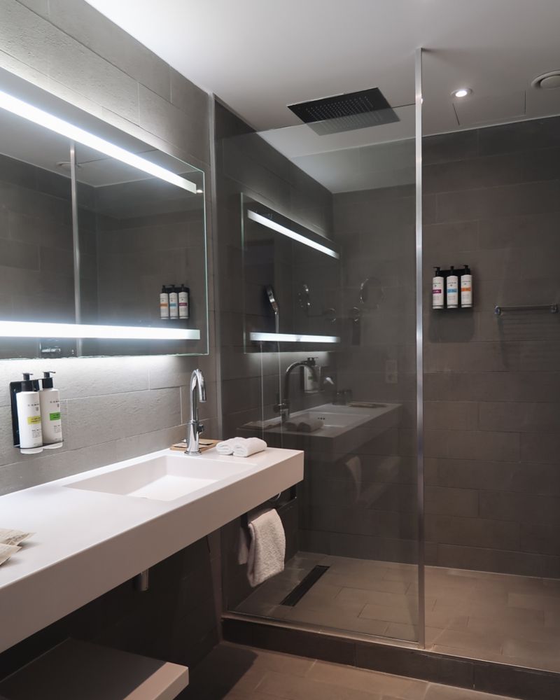 ห้องพัก 280 ตร.ฟุต พร้อม WIFI ทีวี 42 นิ้ว ตู้เย็นขนาดเล็ก น้ำดื่ม BE WTR ชา Pure เครื่องชงกาแฟ Nespresso และห้องน้ำพร้อมเรนชาวเวอร์ รวมถึงผลิตภัณฑ์ C.O. Bigelow เสื้อคลุมอาบน้ำ รองเท้าแตะ เครื่องเป่าผม เตารีด และตู้เซฟ