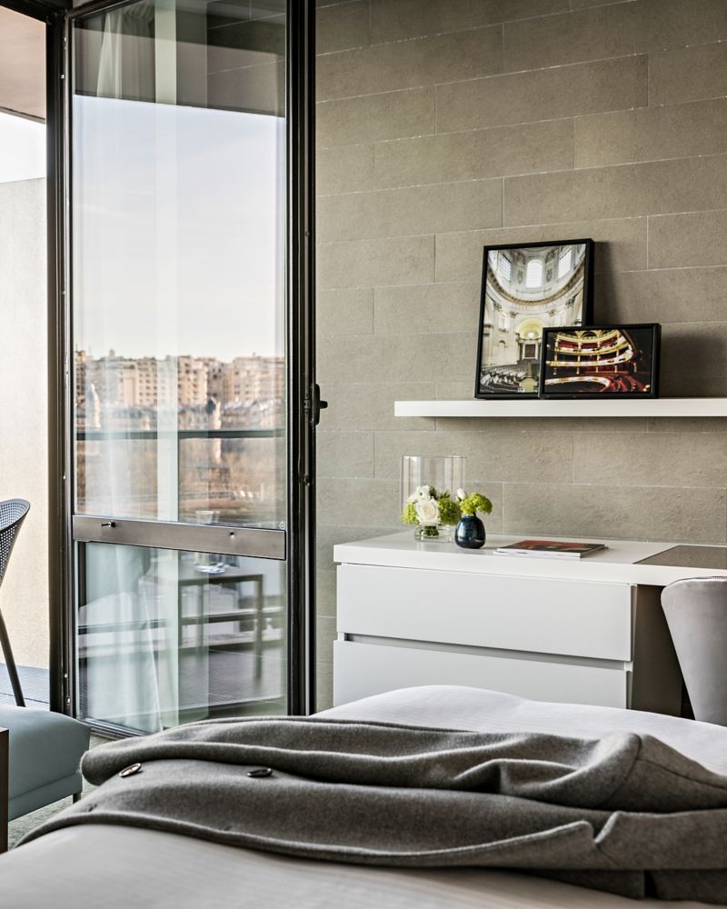 ห้องดีลักซ์บนชั้นสูงมอบการผสมผสานที่ไม่เหมือนใครระหว่างการพักผ่อนและช่วงเวลาแห่งความคิดสร้างสรรค์ ห้องพักขนาด 35 ตร.ม. (377 ตร.ฟุต) นี้ประกอบด้วยเตียงคิงไซส์ โซฟาเบด และระเบียงพร้อมทิวทัศน์อันงดงามของหอไอเฟล เพลิดเพลินกับการพักผ่อนอย่างมีความหมายและสะดวกสบายด้วยเทคโนโลยีที่ใช้งานง่ายและสิ่งอำนวยความสะดวกที่เตรียมด้วยความใส่ใจ