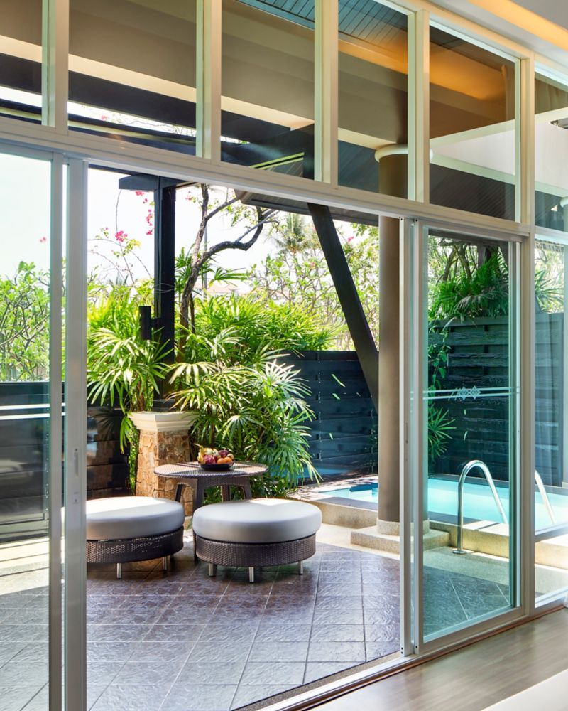 พูลวิลล่า วิวสวน โอเอซิสเมืองร้อนที่จุดประกายความสดชื่น มอบพื้นที่ที่ออกแบบอย่างพิถีพิถันขนาด 150 ตร.ม. (1,614 ตร.ฟุต) เพลิดเพลินไปกับสระว่ายน้ำส่วนตัว ระเบียงอาบแดด และการผสมผสานที่ลงตัวระหว่างการพักผ่อนและความคิดสร้างสรรค์ พร้อมอินเทอร์เน็ตความเร็วสูงและโต๊ะทำงาน