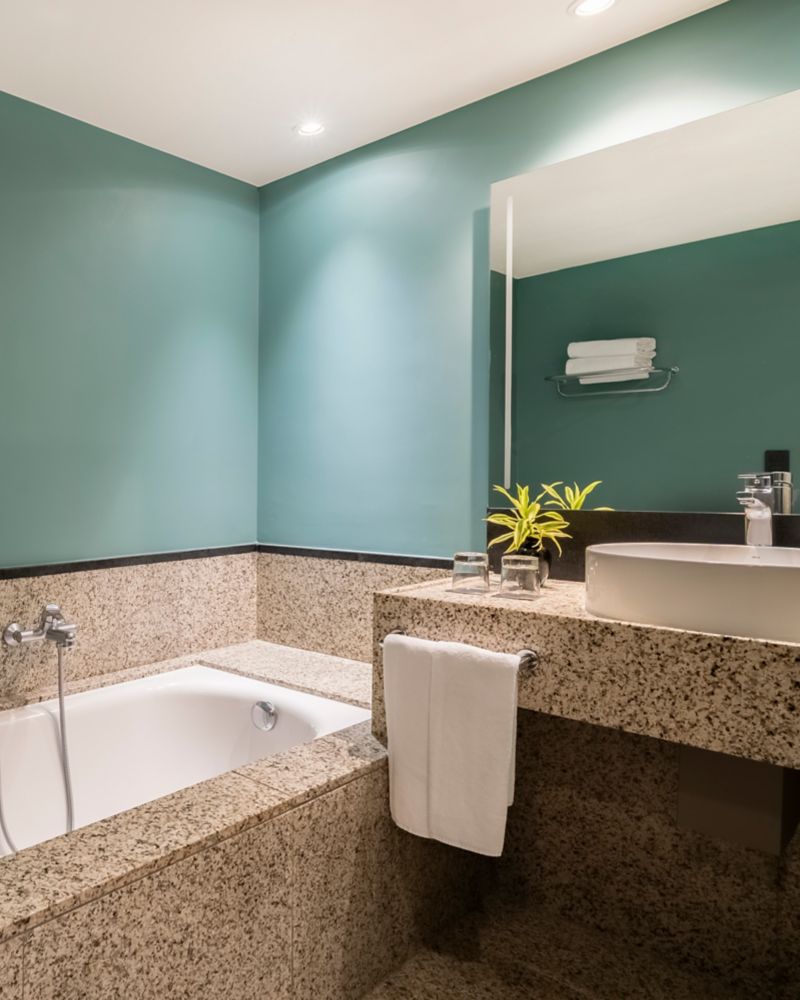 ห้องเอ็กเซ็กคูทีฟเตียงคู่ที่มาพร้อมเตียงเดี่ยวคู่และทีวีขนาด 55 นิ้ว คือพื้นที่พักผ่อนที่เติมความสดชื่นสำหรับการพักผ่อนและจุดประกายความคิดสร้างสรรค์ ให้เราได้ดื่มด่ำไปกับพื้นที่ที่ซึ่งสิ่งอำนวยความสะดวกที่เตรียมด้วยความใส่ใจมาบรรจบกับเทคโนโลยีที่ใช้งานง่าย เพื่อการผสมผสานอย่างลงตัวระหว่างการพักผ่อนและแรงบันดาลใจ เพลิดเพลินไปกับความหรูหราของอ่างอาบน้ำขนาดกว้างขวาง ที่เหมาะอย่างยิ่งสำหรับการหยุดพักอย่างมีความหมายหลังจากออกไปสำรวจมาทั้งวัน