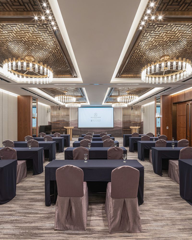 สัมผัสศิลปะแห่งการประชุมบนพื้นที่แบบไดนามิกขนาด 1,274 ตร.ม. ตั้งแต่ความยิ่งใหญ่ของห้องแกรนด์บอลรูมไปจนถึงเสน่ห์อันเป็นกันเองของห้อง Legacy แต่ละสถานที่มีพื้นที่อันเป็นเอกลักษณ์สำหรับความคิดสร้างสรรค์ ด้วยเทคโนโลยีที่ทันสมัยและการวางแผนงานอีเวนต์ที่คัดสรรมาอย่างดี แรงบันดาลใจของคุณจะมีชีวิตขึ้นมาท่ามกลางทิวทัศน์อันน่าทึ่งและการตกแต่งภายในร่วมสมัย