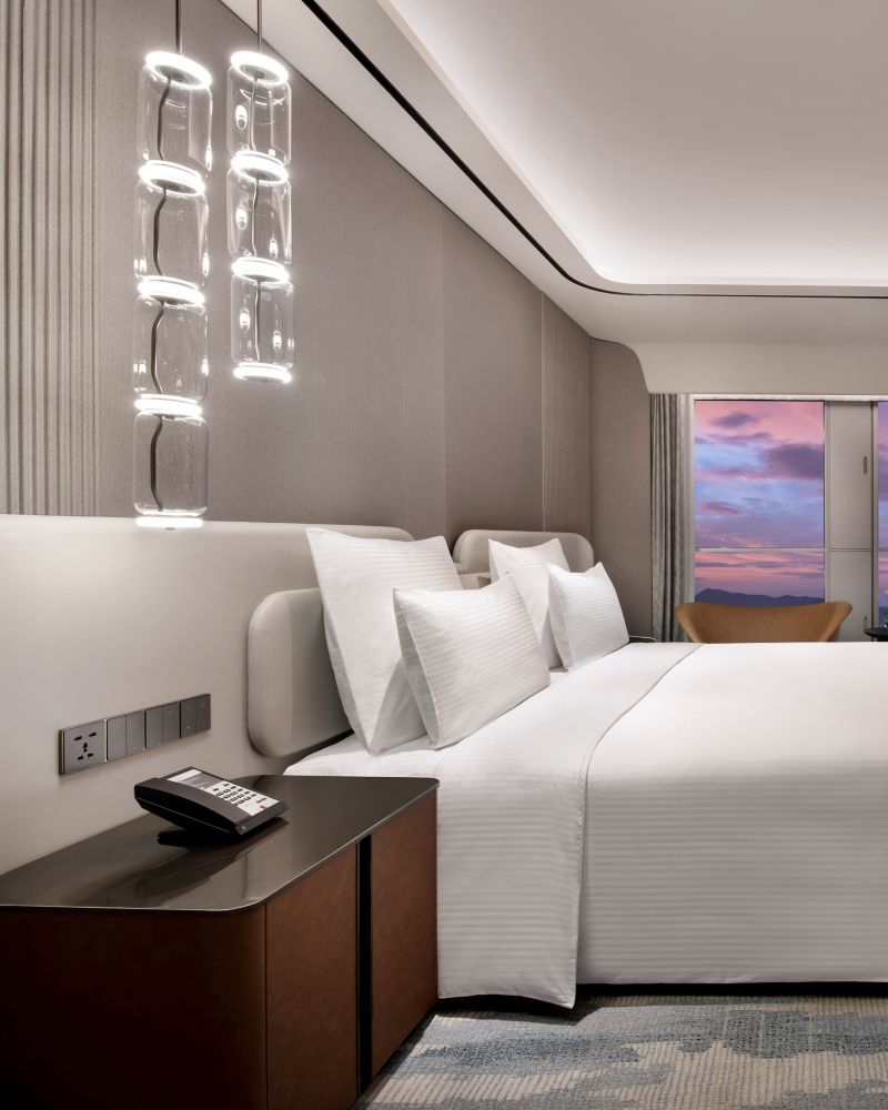 46 m²/495 sq. ft. room, Located on 47th to 53th floors, Panoramic French windows with Skyline view. Large bathroom with separate shower & bathtub. Luxurious mattress & amenities. 55'' TV, High speed Internet, wireless charger.