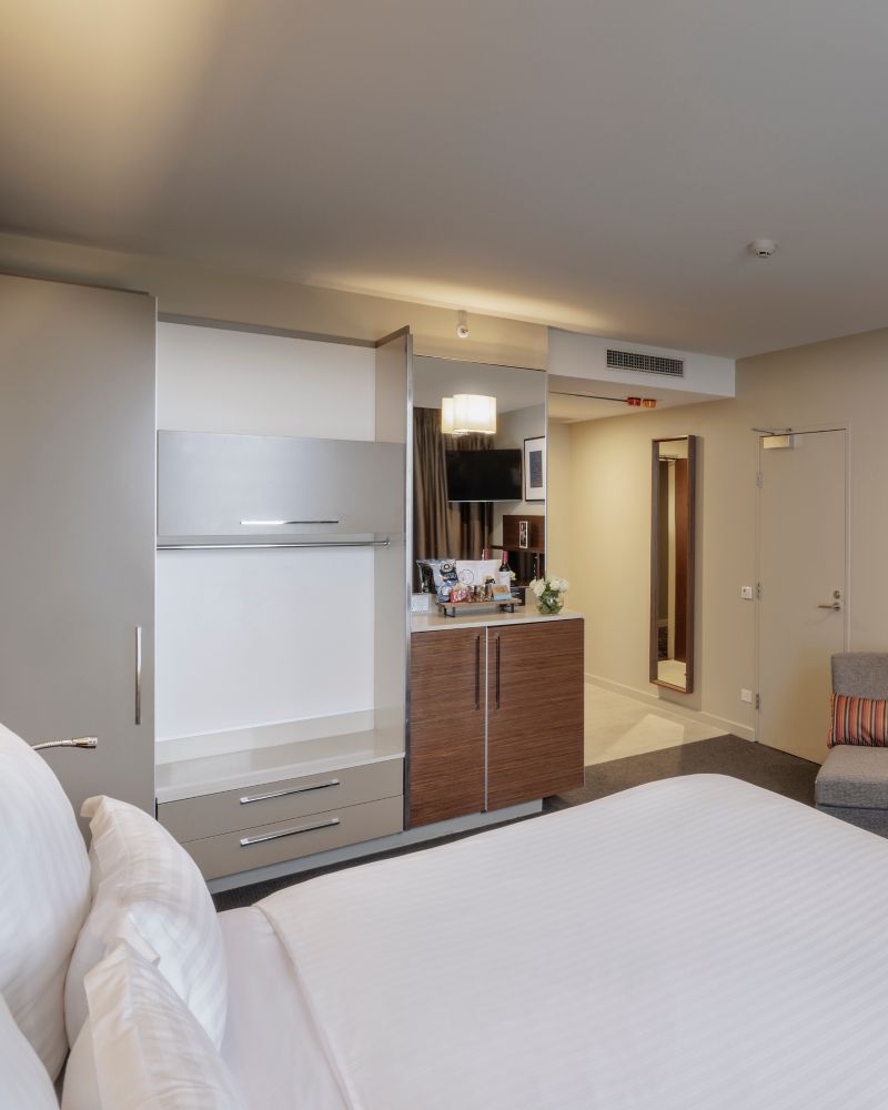 ห้องพักขนาด 34 ตร.ม. บนชั้นสูง มีเตียงคิงไซส์พร้อมวิวเมืองหรือสนามกีฬา เครื่องชงกาแฟ Nespresso สมาร์ททีวี หน้าต่างบานใหญ่ โต๊ะทำงานทันสมัย ที่นั่งสำหรับคู่รักและเก้าอี้วางเท้า มินิบาร์ อุปกรณ์ชงชาและกาแฟ ห้องน้ำหินอ่อนพร้อมอ่างอาบน้ำและฝักบัวแยกกัน