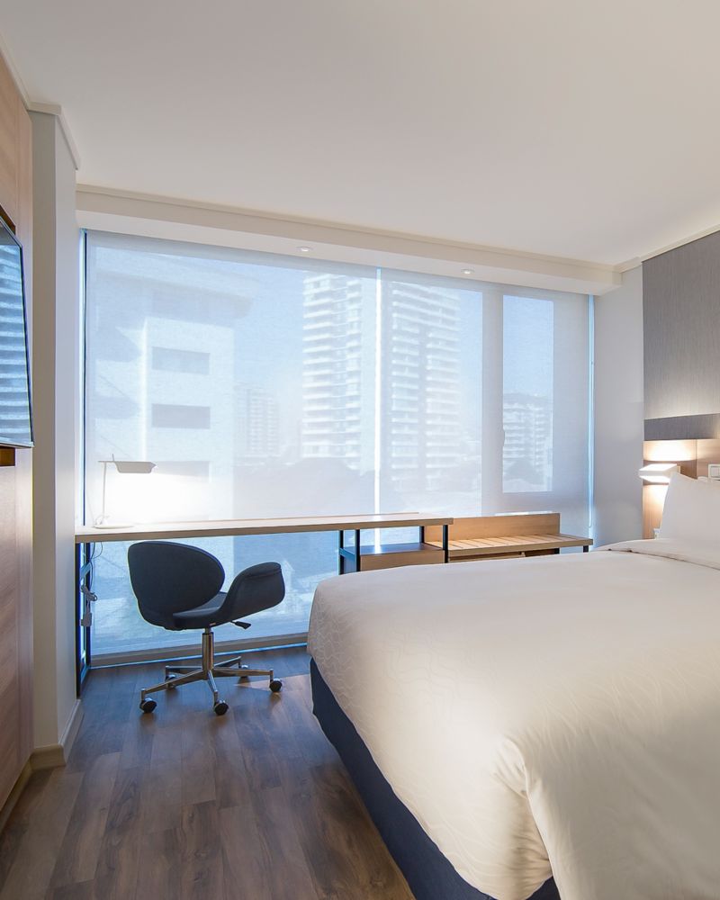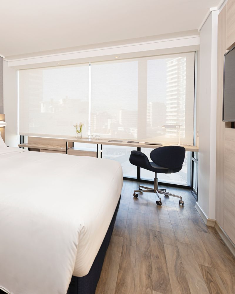 This 23 m² room is an excellent choice for couples. Offering the necessary autonomy for your stay in Viña del Mar, the space has TV with Netflix, Beyond TV and large windows, favoring natural light.
