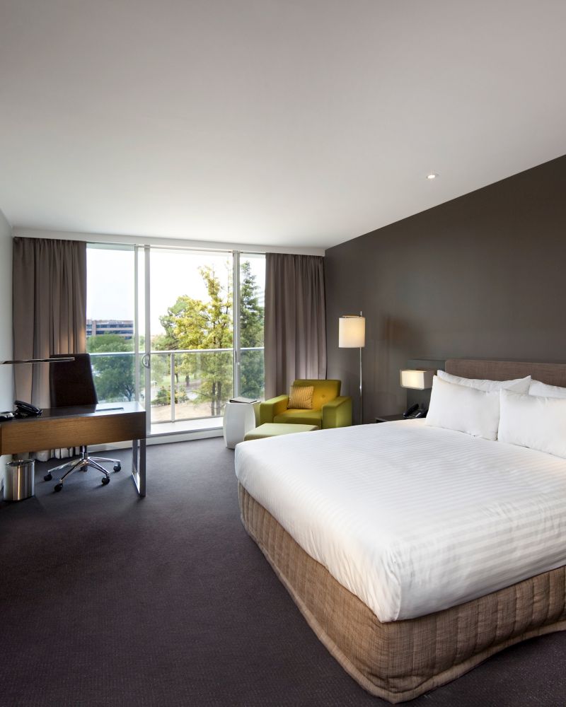 尊享豪华客房面积 34 平方米(366 平方英尺),配备特大床和阳台,公园景观与现代舒适设施在此巧妙融合,为你打造一处理想的休憩天地。您可畅享高速网络、50 英寸电视和书房,助你在旅途中保持创造力。