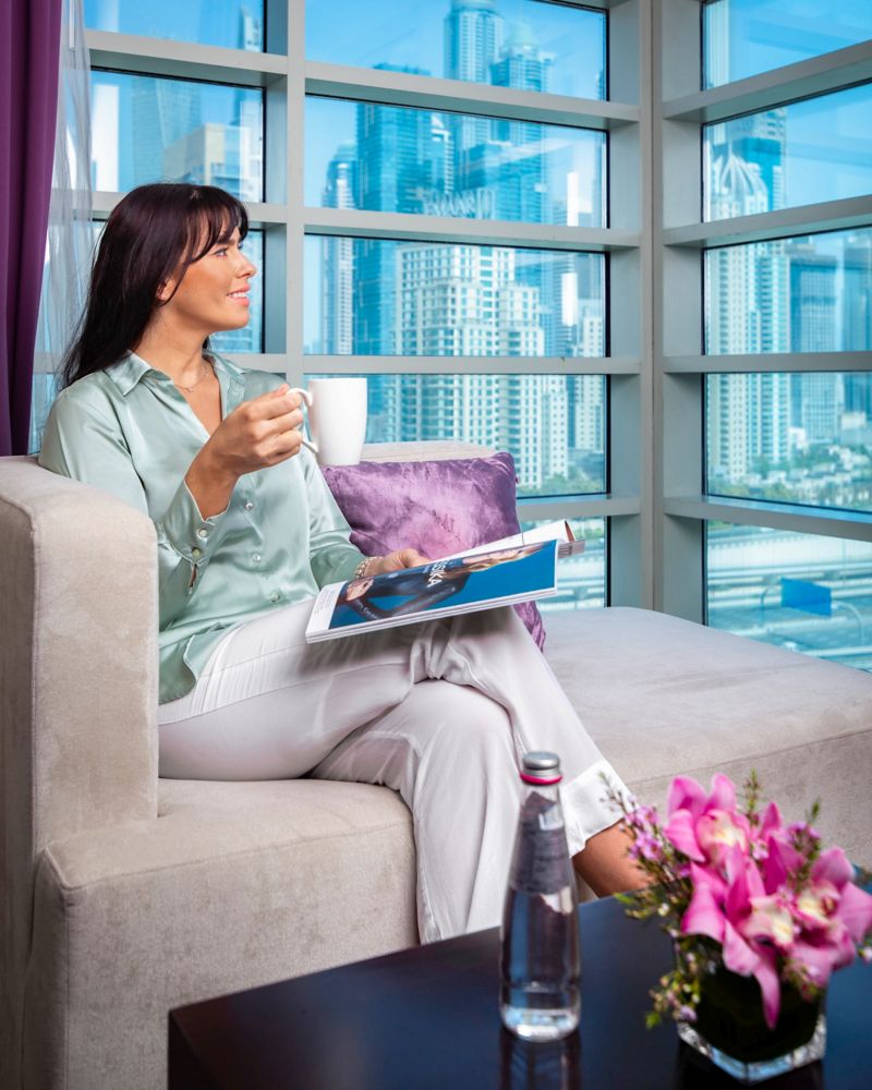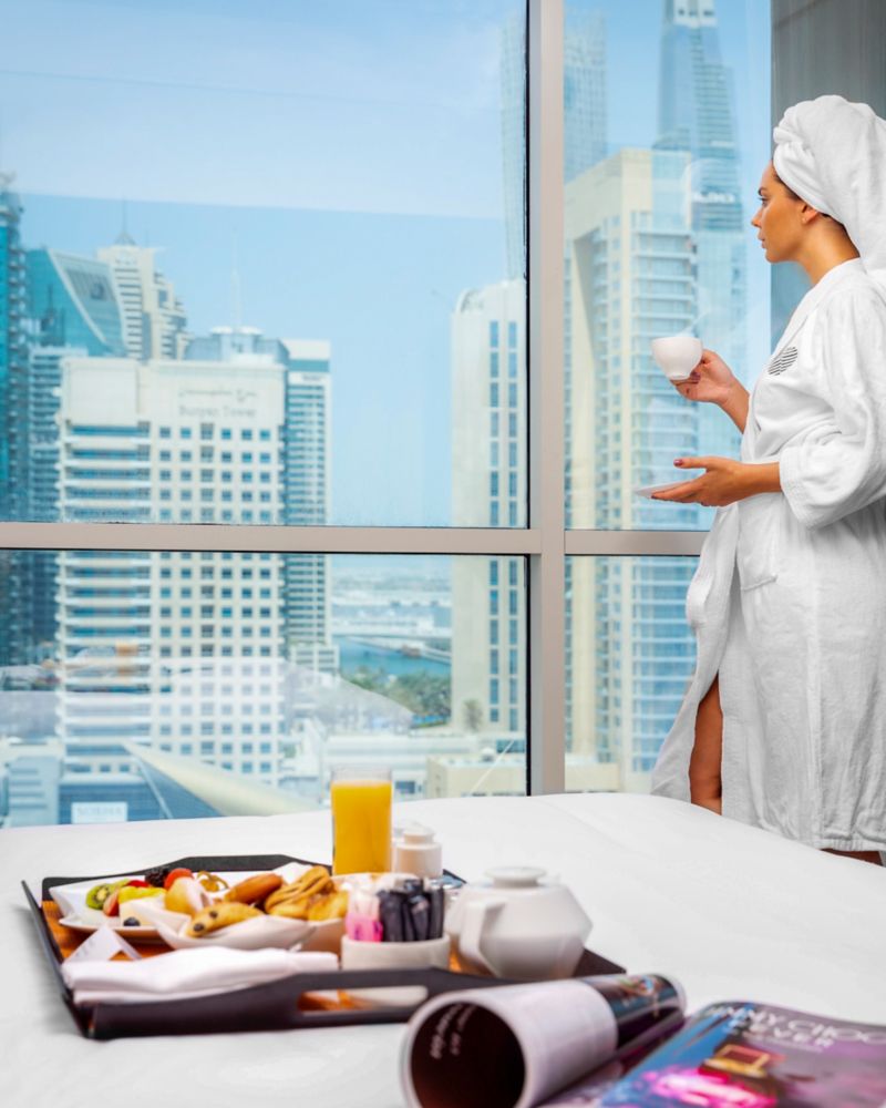 拥有温馨高雅的现代设计,可欣赏湖景或迪拜码头景观,配备办公桌、免费无线网络、LED 高清电视、舒适无比的铂尔曼寝具概念、带独立步入式淋浴间和浴缸的现代浴室。