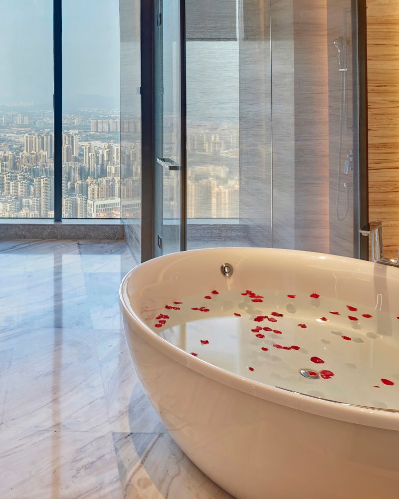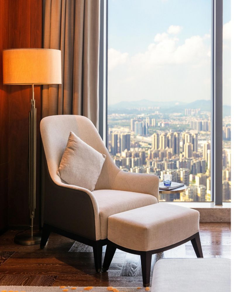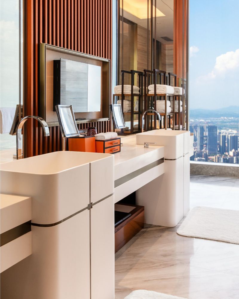 总统套房面积 80 平方米(861 平方英尺),将人性化科技与宁静舒适的体验融为一体。尊享专属行政酒廊礼遇、私人泳池和全景视野,在此放松身心,激发创意灵感。