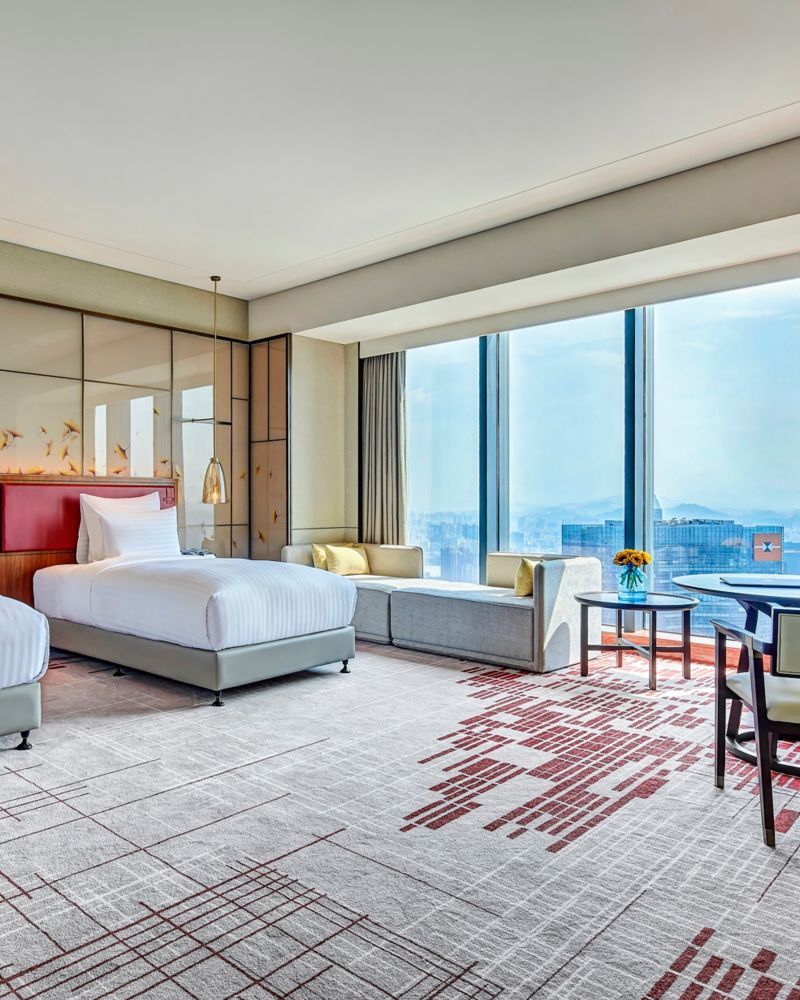 高楼层江景豪华客房(双床)是一处理想的静谧之所,可将迷人景致尽收眼底。房间面积 42 平方米(452 平方英尺),将惬意休憩与创意舒适融为一体。欣赏灵动的景观,体验从现代商务书桌到便捷科技设备等一系列贴心设施,为您的住宿之旅注入活力,激发灵感。