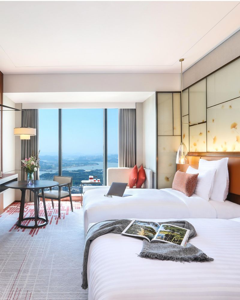客房面积 42 平方米(452 平方英尺),位于 47 至 57 层,配备铂尔曼 C.O.Bigelow 洗浴用品、49 英寸电视、降雨式淋浴和独立浴缸、TOTO 卫浴设施,可应客人要求提供 1 张额外床。可应客人要求提供无烟房和无障碍客房。