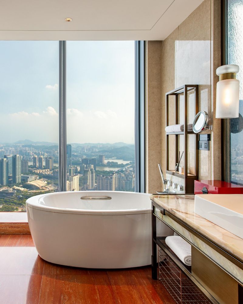 客房面积 42 平方米(452 平方英尺),位于 58 至 60 层,配备铂尔曼 C.O.Bigelow 洗浴用品、49 英寸电视、迷你酒吧、降雨式淋浴和独立浴缸、TOTO 卫浴设施,可应客人要求提供 1 张额外床。迷人的城市景观。
