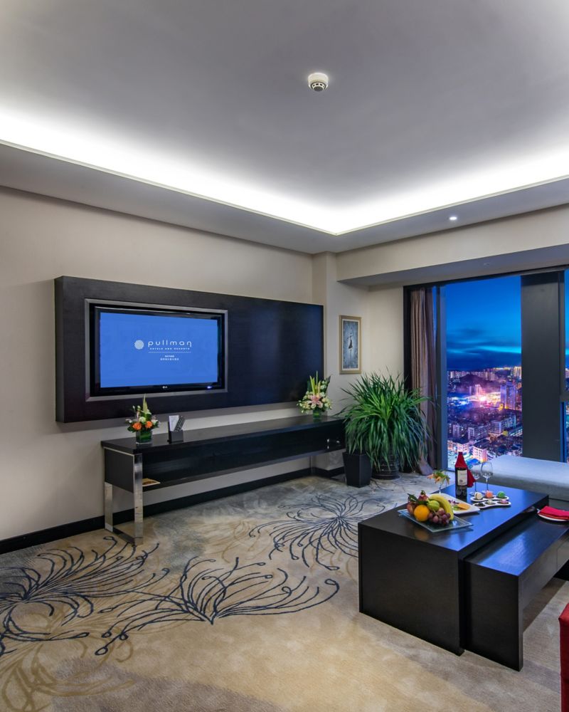 位于 7-25 层,面积 42 平方米,配备 1 张舒适的特大床、独立淋浴、浴缸、智能门锁系统、47 英寸液晶电视和免费无线网络,透过全景窗可欣赏城景或山景。