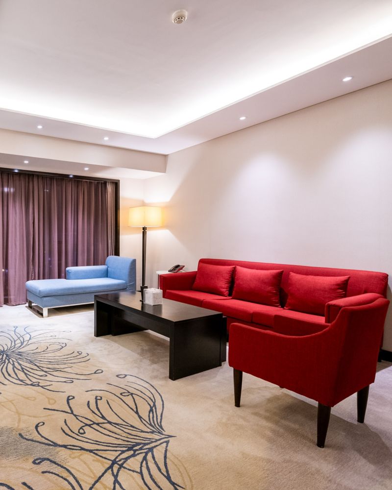 位于 26-30 层,面积 45 平方米,配备 2 张舒适的单人床、独立淋浴、浴缸、47 英寸液晶电视、免费无线网络和全景窗,尊享休闲区礼遇。