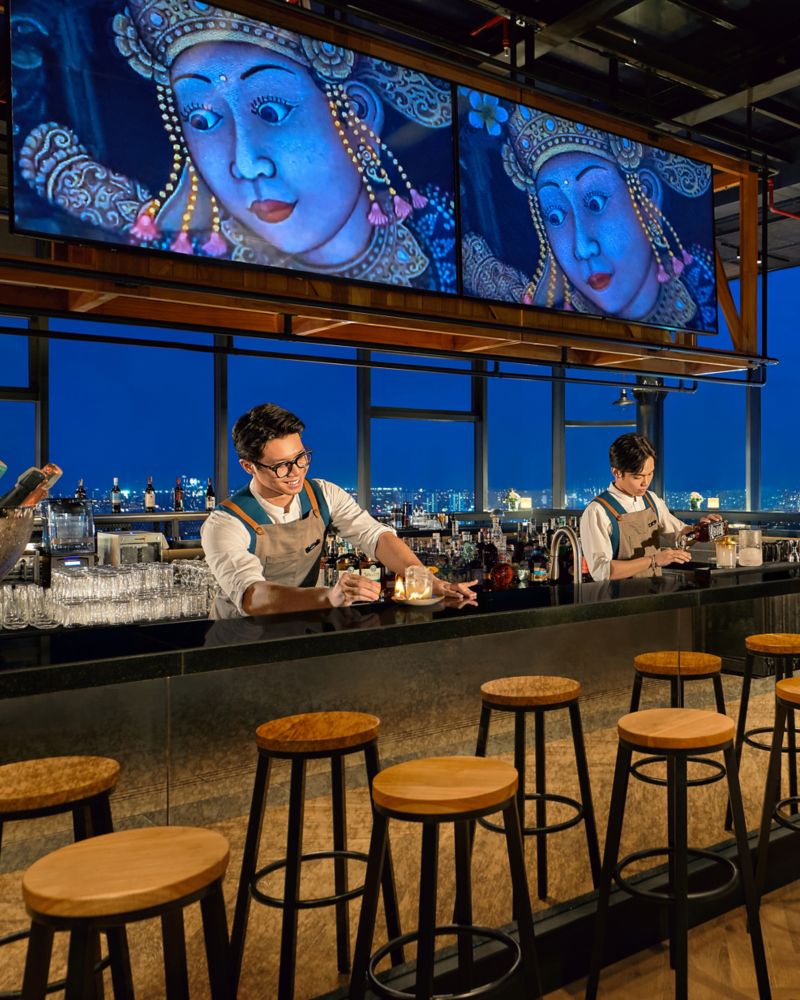 登临 Up & Above Rooftop Bar,精心调制的鸡尾酒与城市全景在此和谐交融,开启美妙夜晚时光。无论是灵活的商务会谈,还是浪漫的日落小酌,这里充满活力的氛围与现场 DJ 音乐都将为你缔造难忘瞬间。