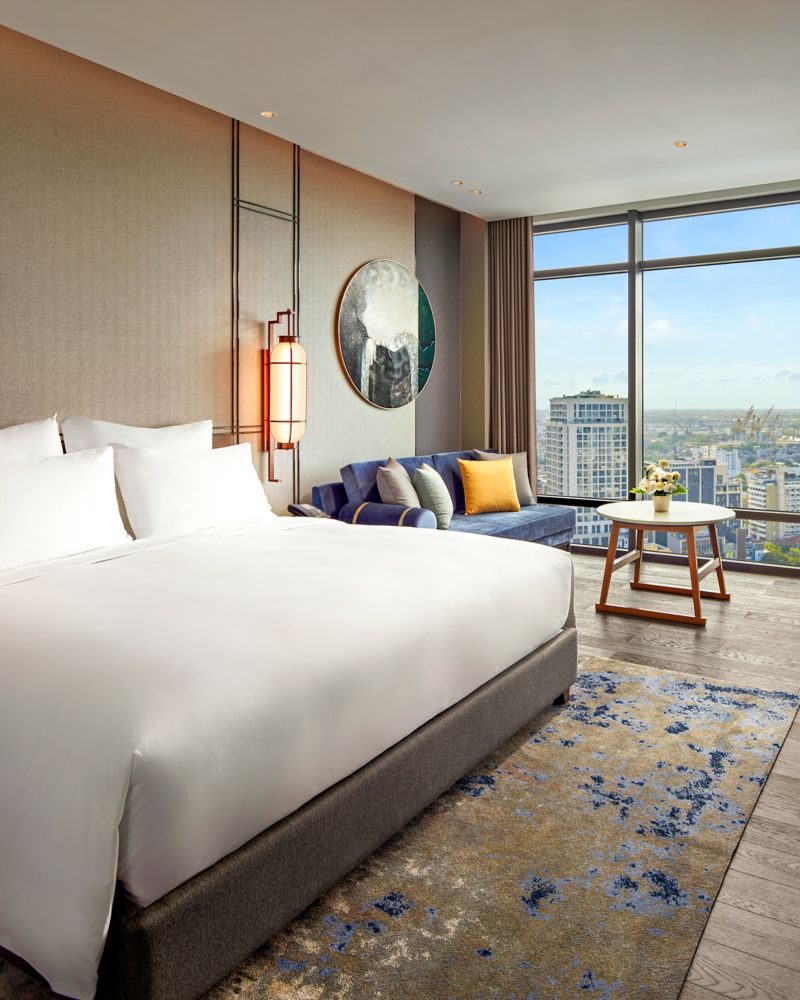 可欣赏海防城市景观,配有全景落地窗。配备铂尔曼特色床、独立浴缸和步入式淋浴间、日式马桶、浓缩咖啡机、55 英寸网络电视、办公区、免费高速无线网络。