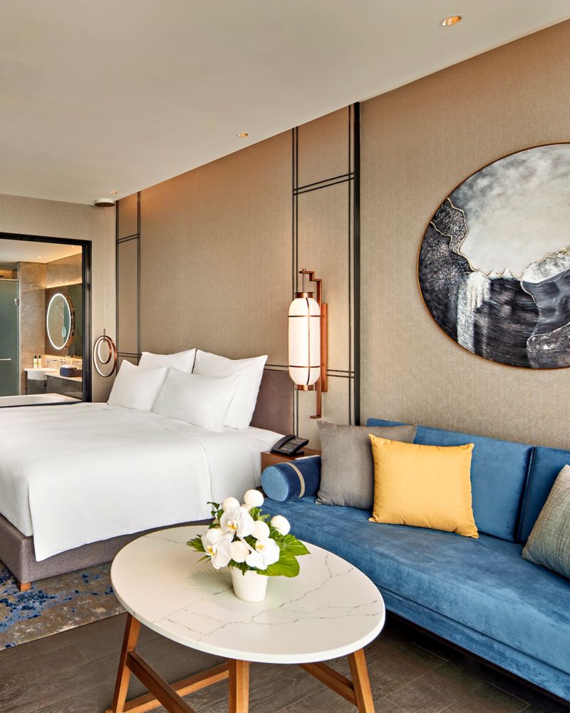 高级特大床房将舒适体验与高效办公巧妙融合。坐拥27平方米(290平方英尺)设计精巧的空间,欣赏活力景观,体验便捷的智能科技。