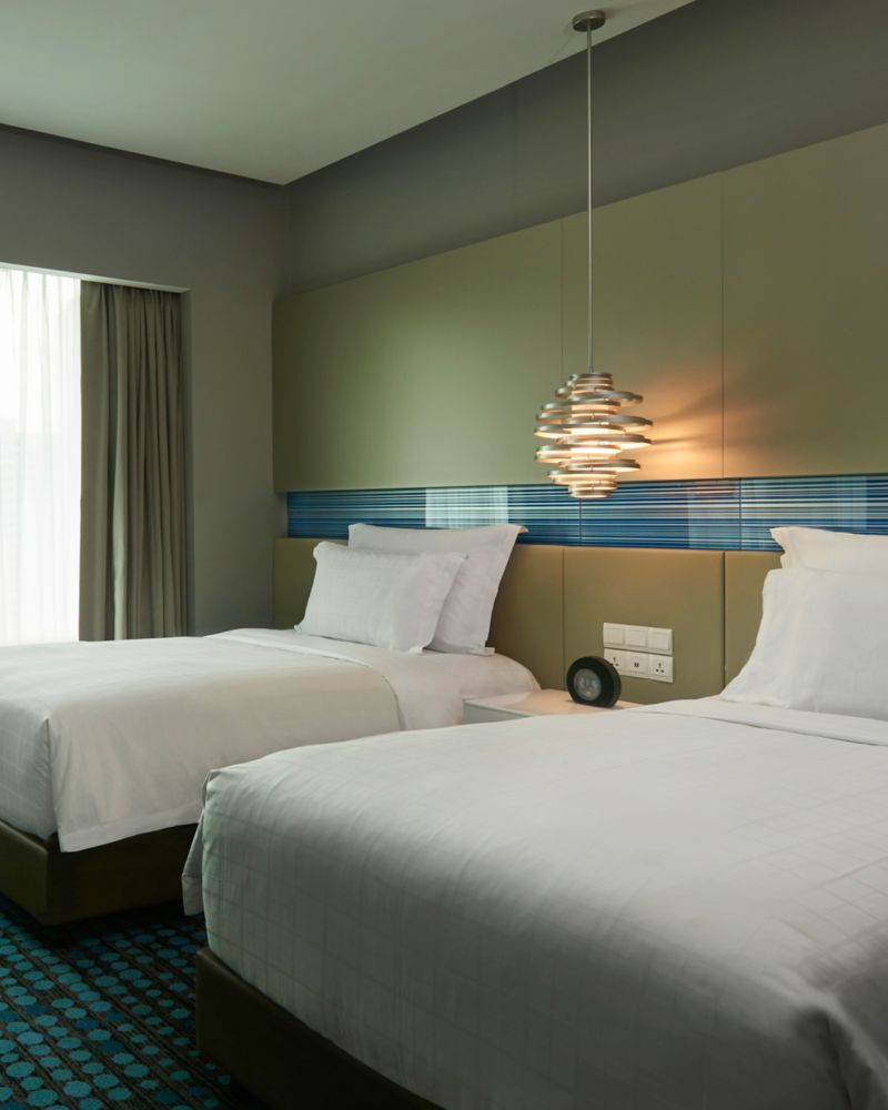 尊享客房配备两张单人床,空间面积为 35 平方米(377 平方英尺),设计时尚雅致,可欣赏吉隆坡活力四射的都市天际线景观。客房内配备 49 英寸 LED 电视、免费无线网络和迷你吧。贴心设施与智能科技共同打造出一方清新空间,让您在此放松身心,激发创意。