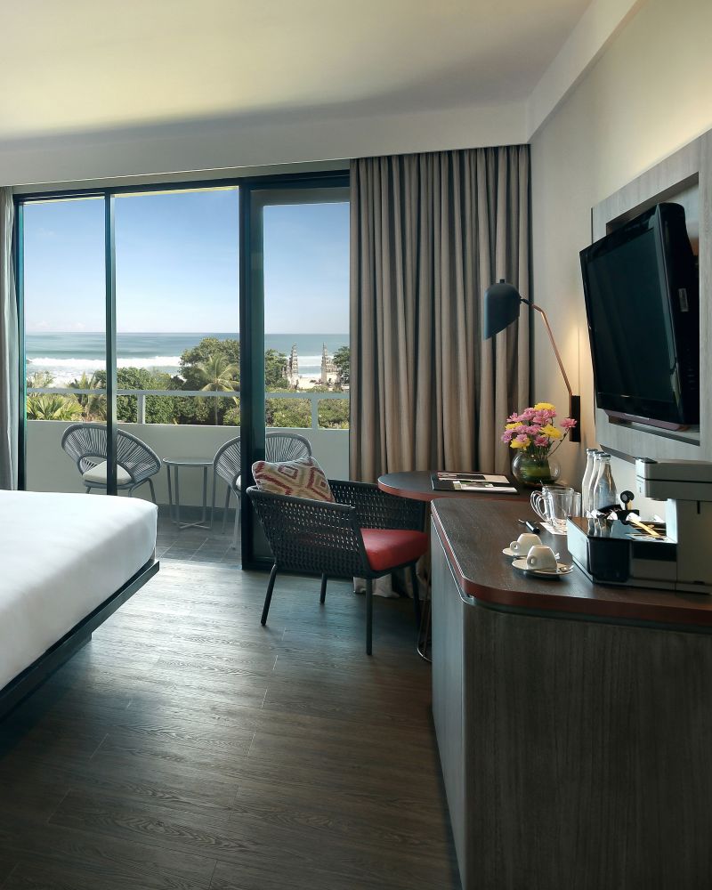 尊享豪华客房面积 42 平方米(452 平方英尺),将静谧海景与灵活的起居空间融为一体。客房配备 55 英寸智能液晶电视和高速网络,让休憩时光与创意灵感在此交织碰撞。私人阳台、瑜伽套件和定制茶具为你带来贴心舒适的体验。