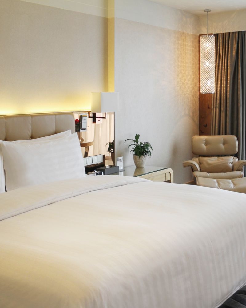 高级特大床江景客房巧妙融合舒适体验与创意灵感,配备贴心设施与智能科技,为你打造理想的下榻之所。房间面积 35 平方米(377 平方英尺),是放松身心、激发灵感的理想天地,更可欣赏活力十足的江景。